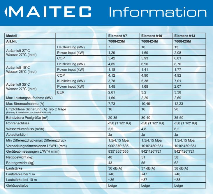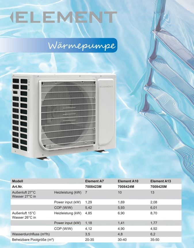 13 kW | Beheizbare Poolgröße 35-50 m³
